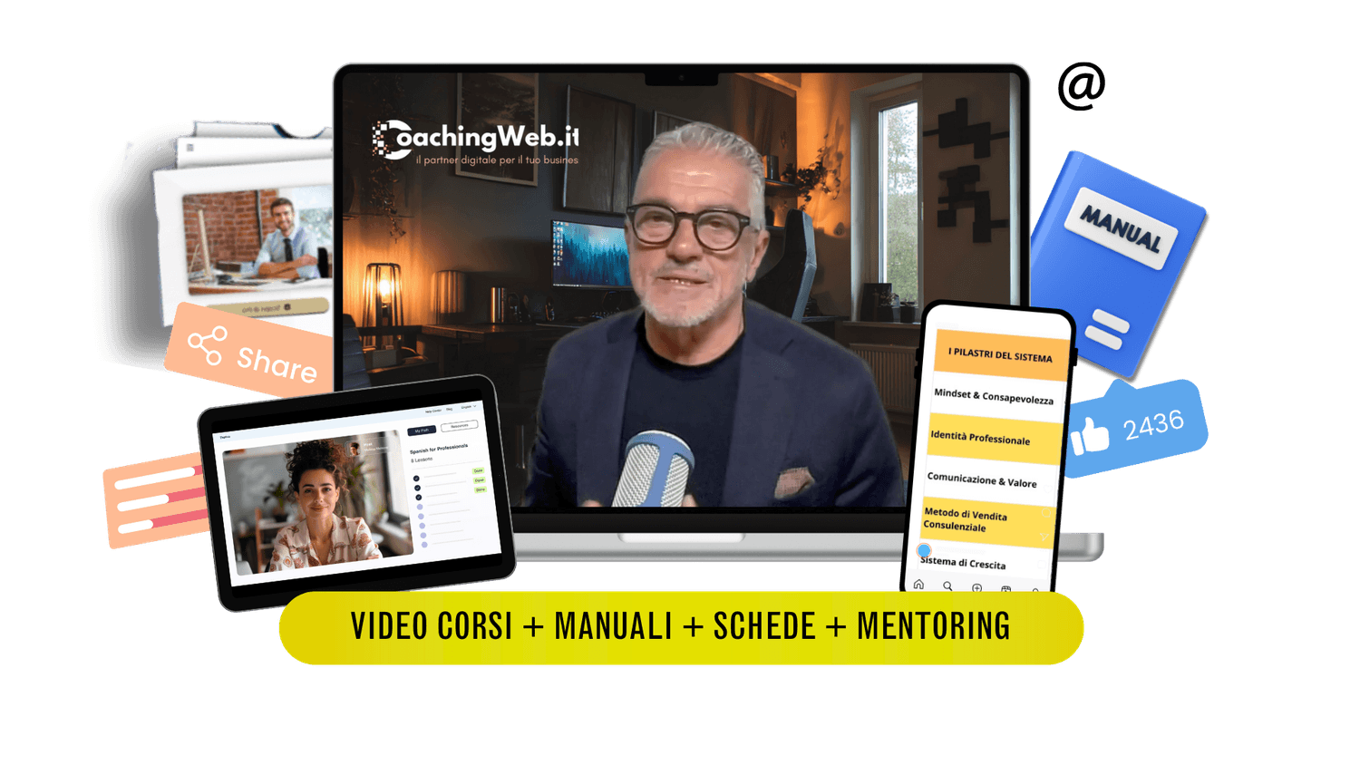 Il percorso ideale è: iniziare dal Percorso di sintesi; proseguire con il Video corso e completare con il Mentoring personalizzato