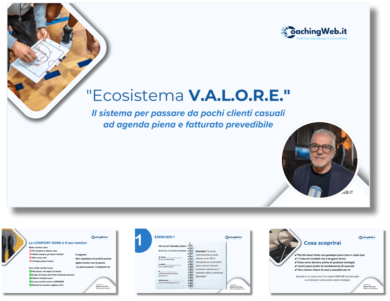 Sono coach da 5 anni, certificato e preparato, ma faticavo ad arrivare a 3.000€ al mese. Ero "il coach per tutti" - business, life, career - nessuno capiva cosa facevo davvero. Facevo consulenze gratis di 2 ore e sentivo sempre "ci penso".